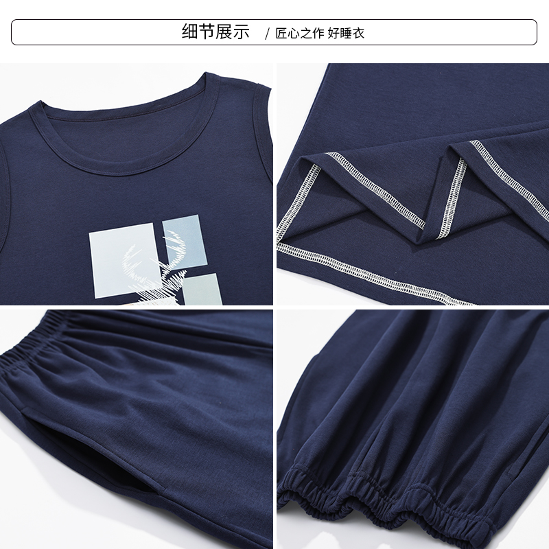 帕兰朵纯棉睡衣男士夏季薄款坎肩短裤舒适家居服夏可外穿男款背心