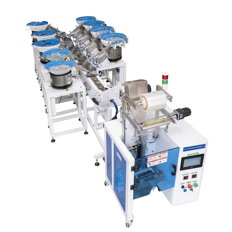 自动多盘爬坡式五金包装机家具配件螺丝包装机塑胶件立式包装机