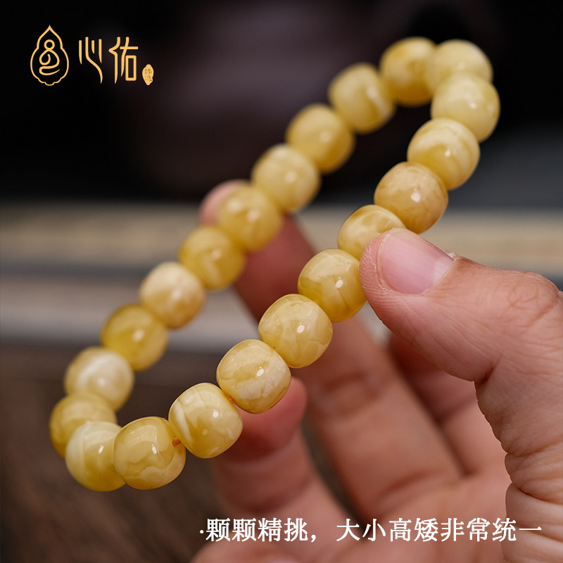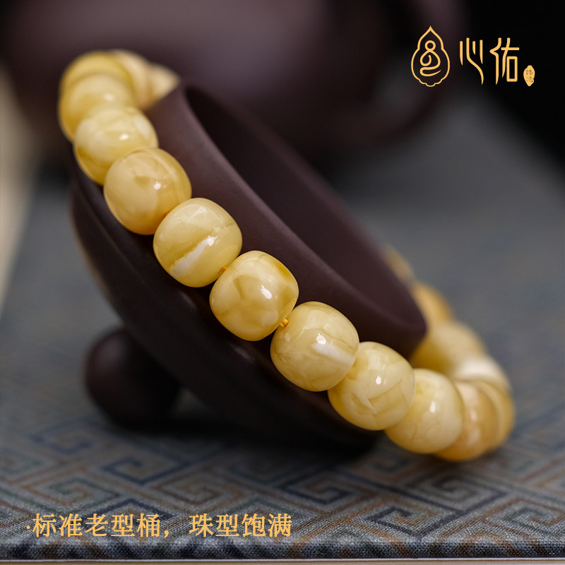 天然蜜蜡手串女款正品 老型桶珠 俄料鸡油黄白花琥珀蜜蜡手链男款