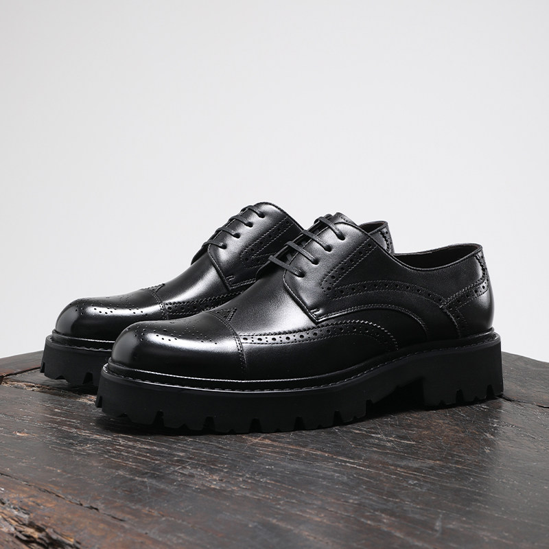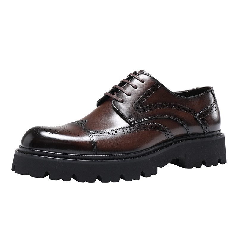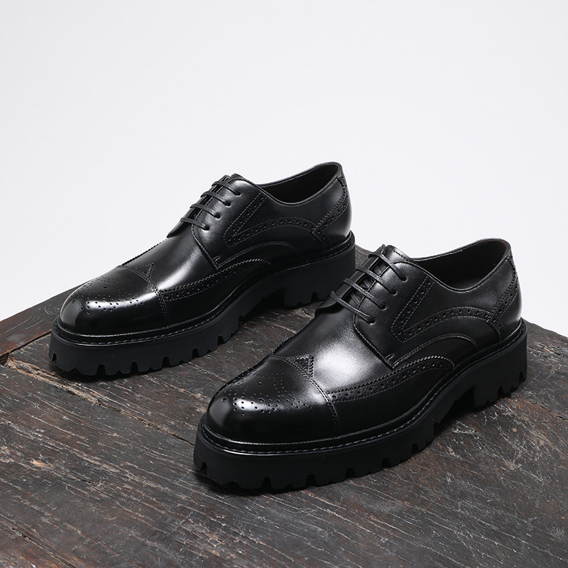 厚底布洛克男鞋商务通勤英伦雕花增高皮鞋男士真皮手工德比鞋