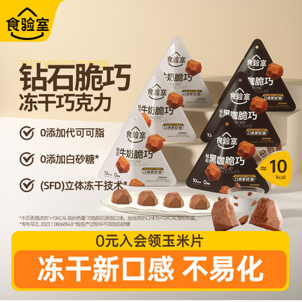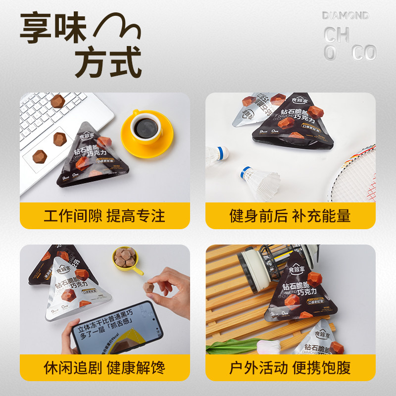 食验室钻石脆脆巧克力纯可可脂健身牛奶巧克力黑巧休闲健康零食