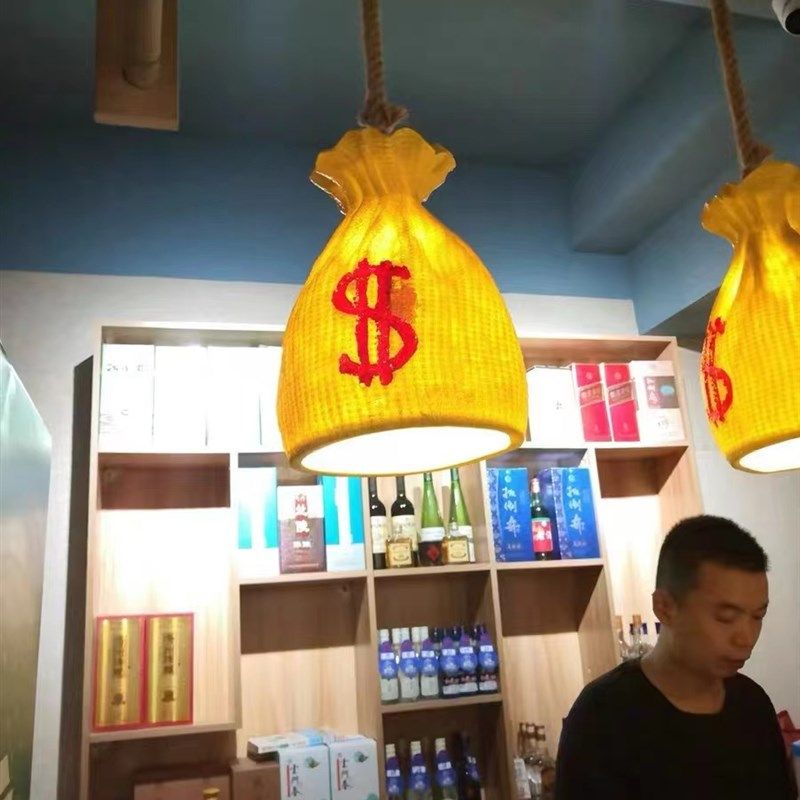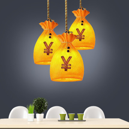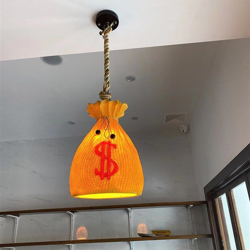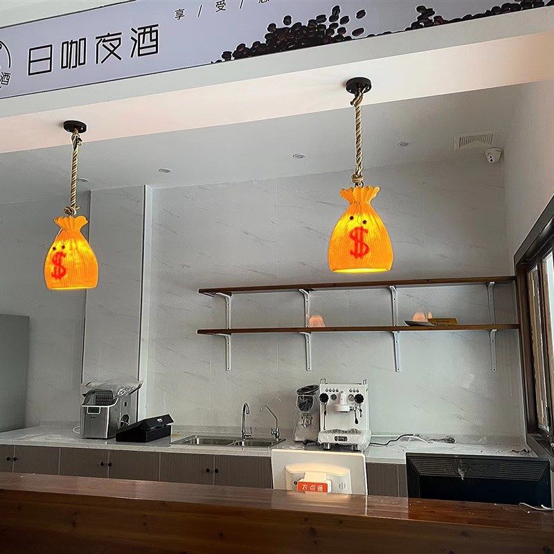 复古工业风酒吧灯餐厅收银台前台火锅店仿古吧台灯麻绳钱袋子吊灯