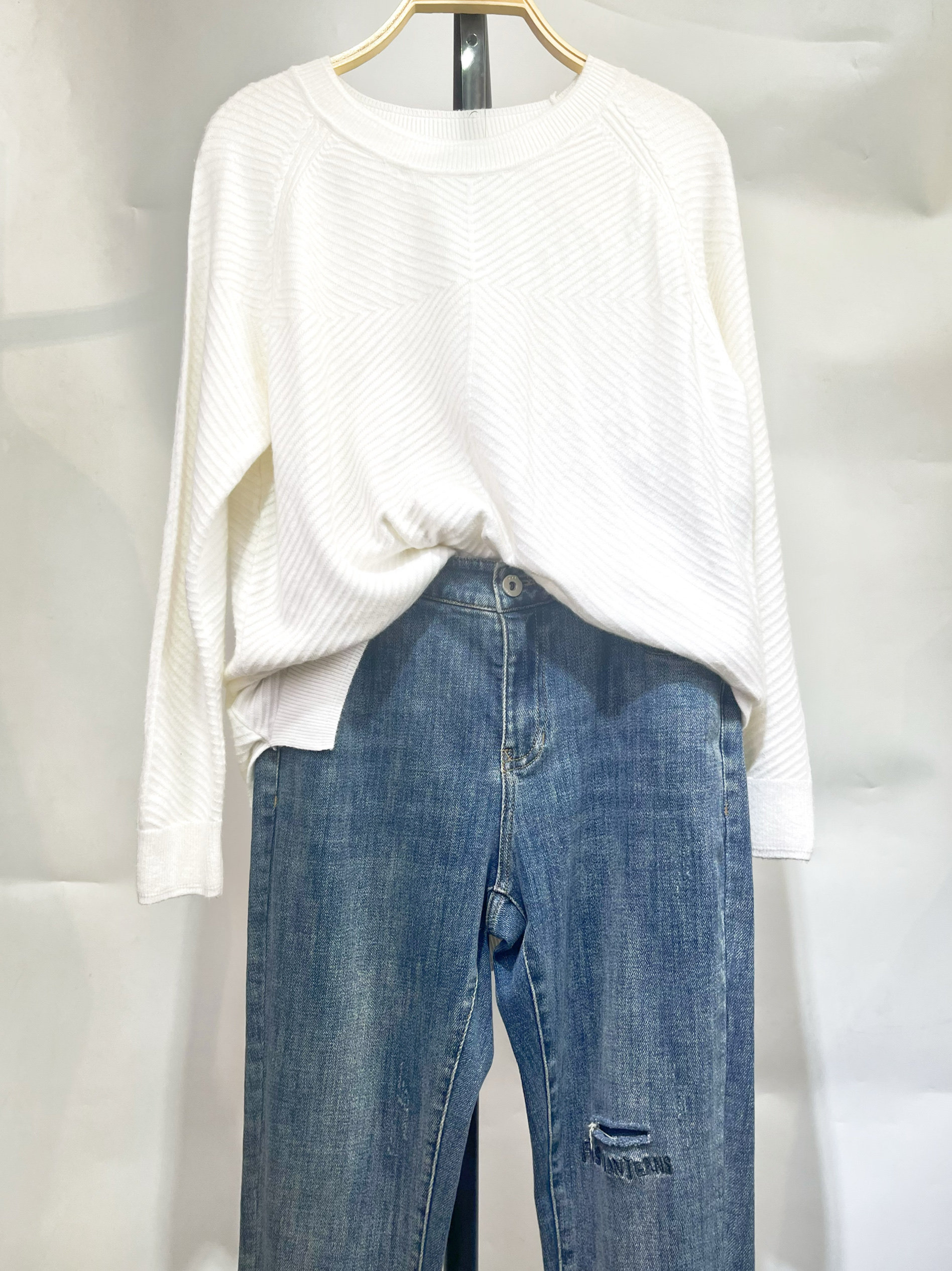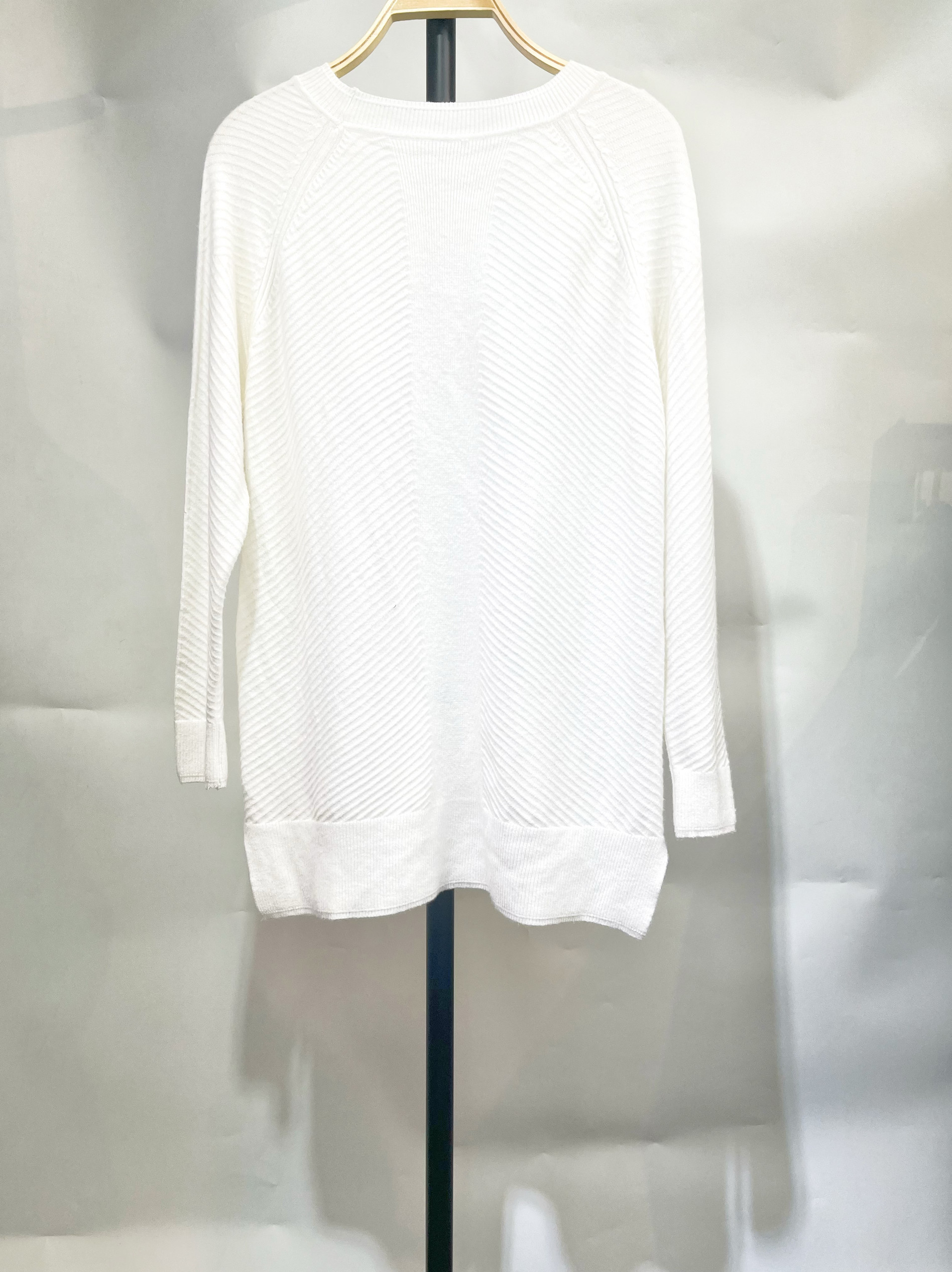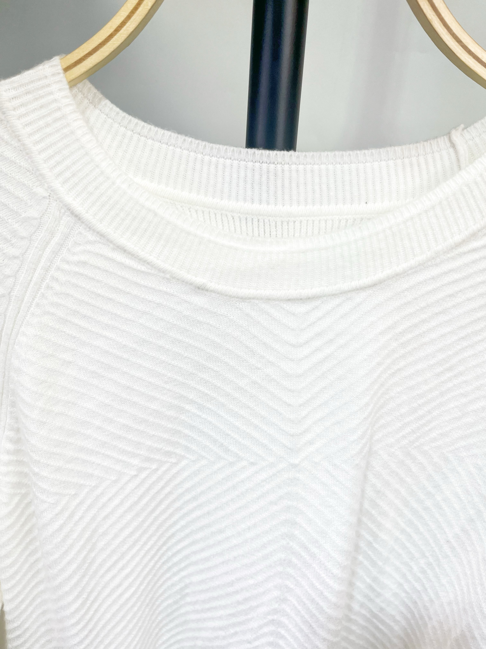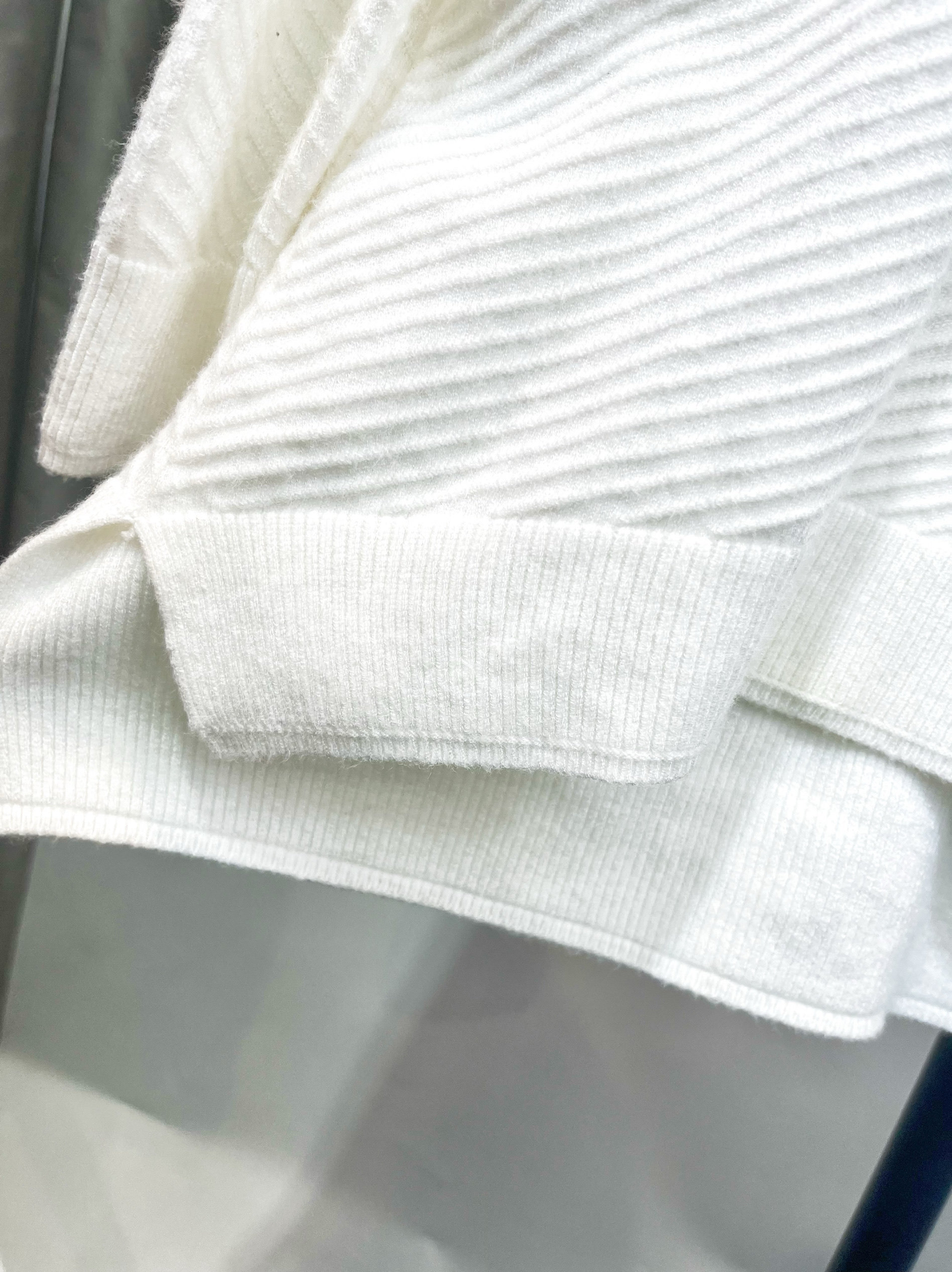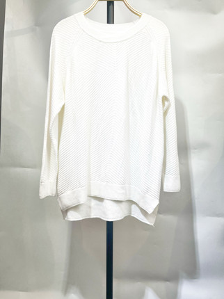 新年特惠白色立体瓦楞条纹插肩袖套头针织衫宽松慵懒风毛衣女孤品