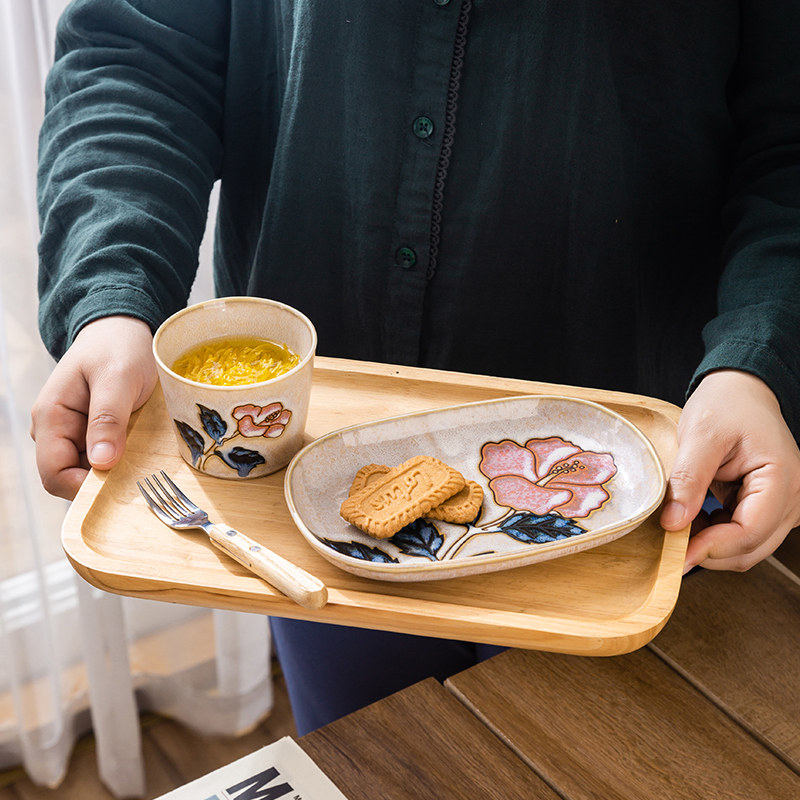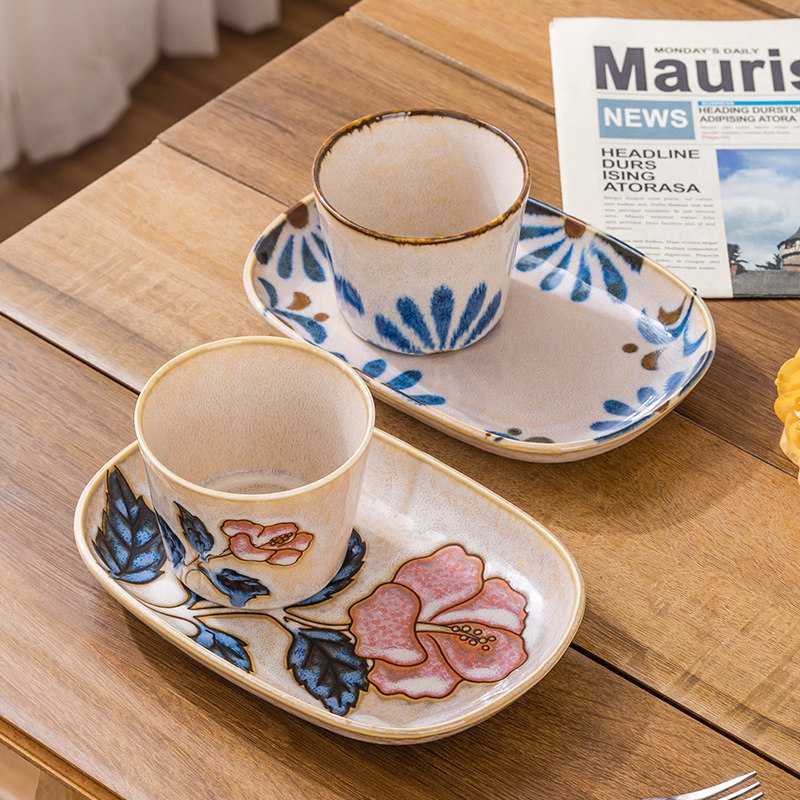 日本进口陶瓷釉下彩茶杯早餐杯下午茶点心咖啡杯碟组合玫瑰ins风