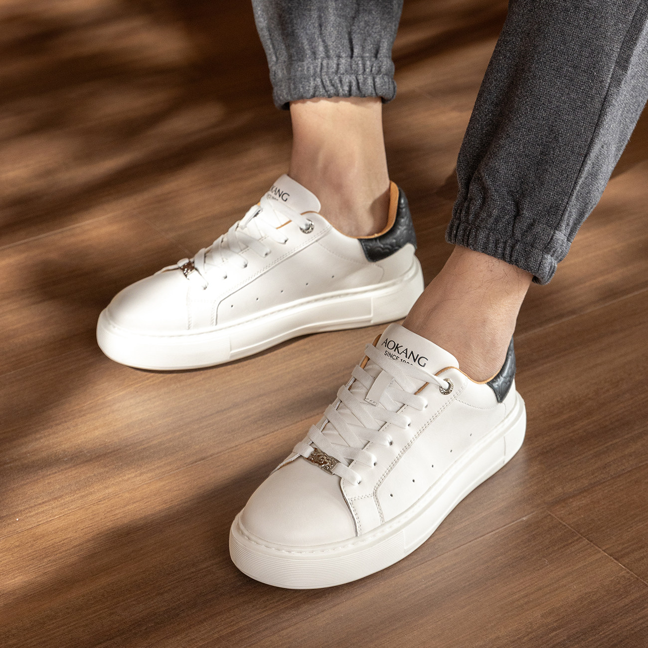 Aokang春季休闲板鞋潮真皮舒适