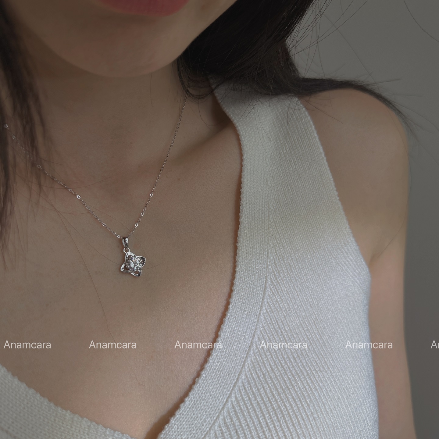 AnamS925纯银高级设计莫桑石项链生日情人礼物送女友锁骨链四叶草