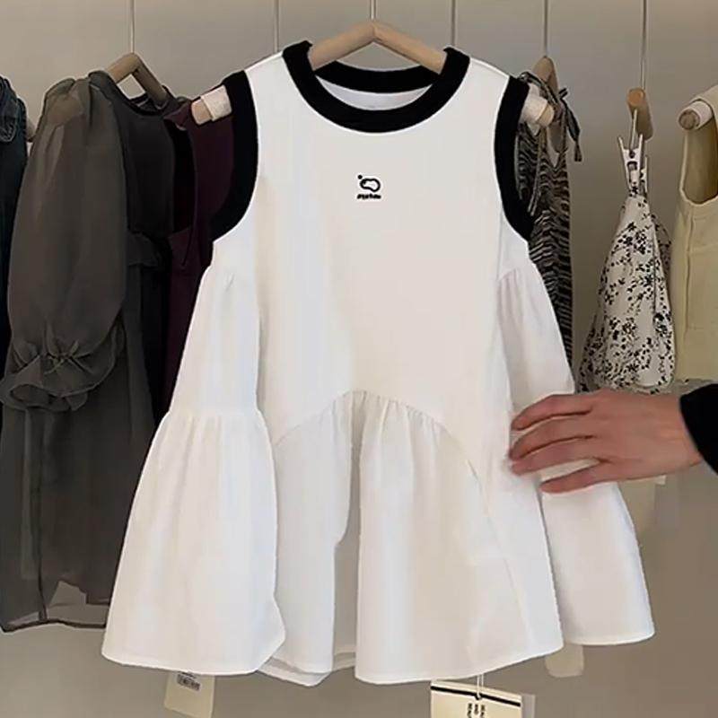 女童背心裙夏季新款儿童宝宝时髦洋气小女孩高级感拼接无袖连衣裙