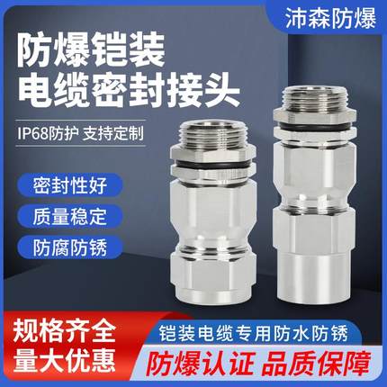 黄铜镀镍铠装防爆格兰头双密封电缆线夹紧防水接头金属填料函