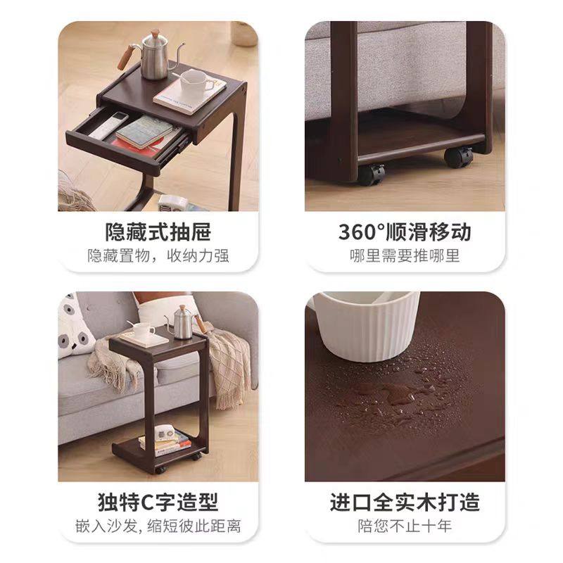 可移动边几带轮实木床头柜c型床位茶几客厅沙发边几卧室笔记本桌
