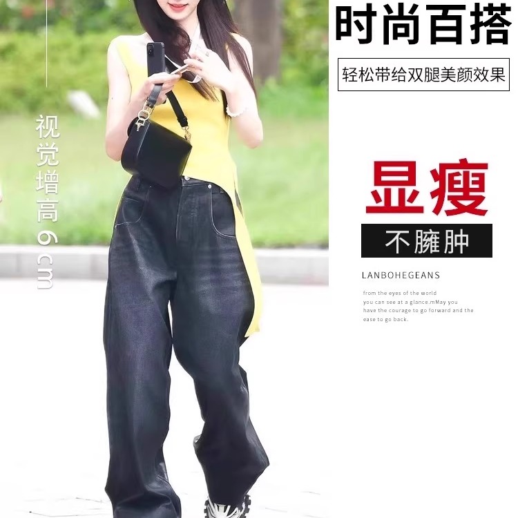 日本OFFCAT田曦薇同款复古灰色牛仔阔腿裤女高腰宽松直筒裤秋冬款
