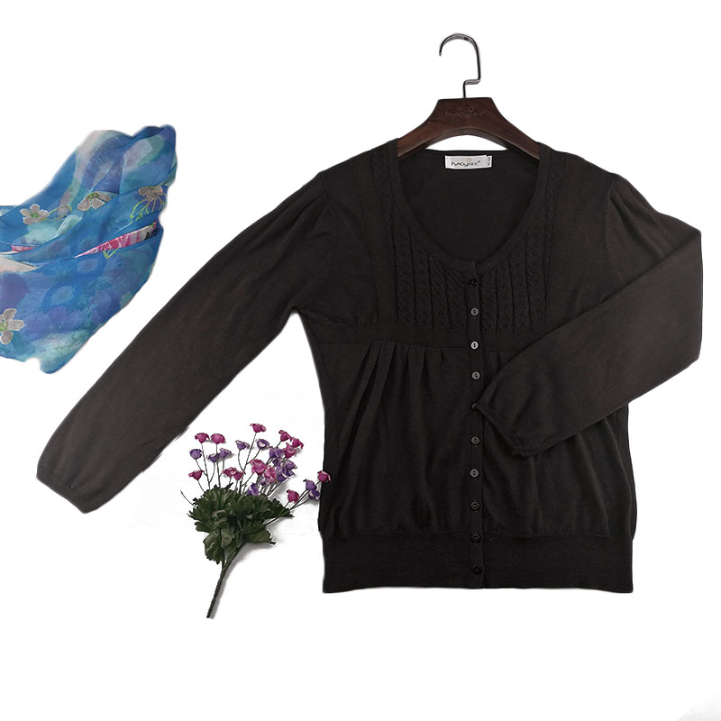 优媛昊艺秋季新款桑蚕丝山羊绒针织开衫V领百搭长袖外搭上衣女装