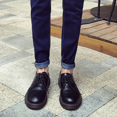 复古日系英伦商务休闲男鞋潮流百搭皮鞋黑色大头鞋低帮马丁情侣鞋