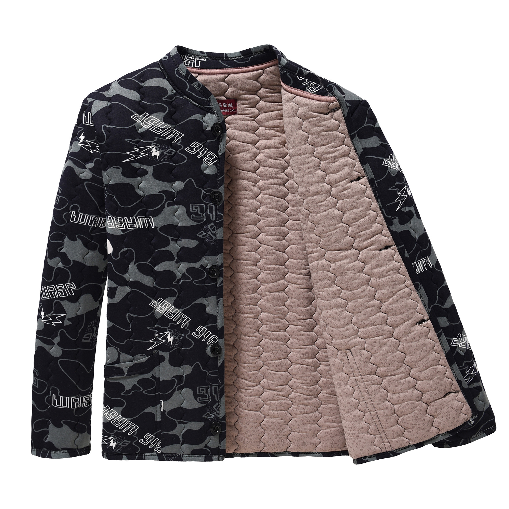 秋冬加厚驼绒迷彩棉袄男加肥大码棉衣棉服夹棉工装保暖外套中老年