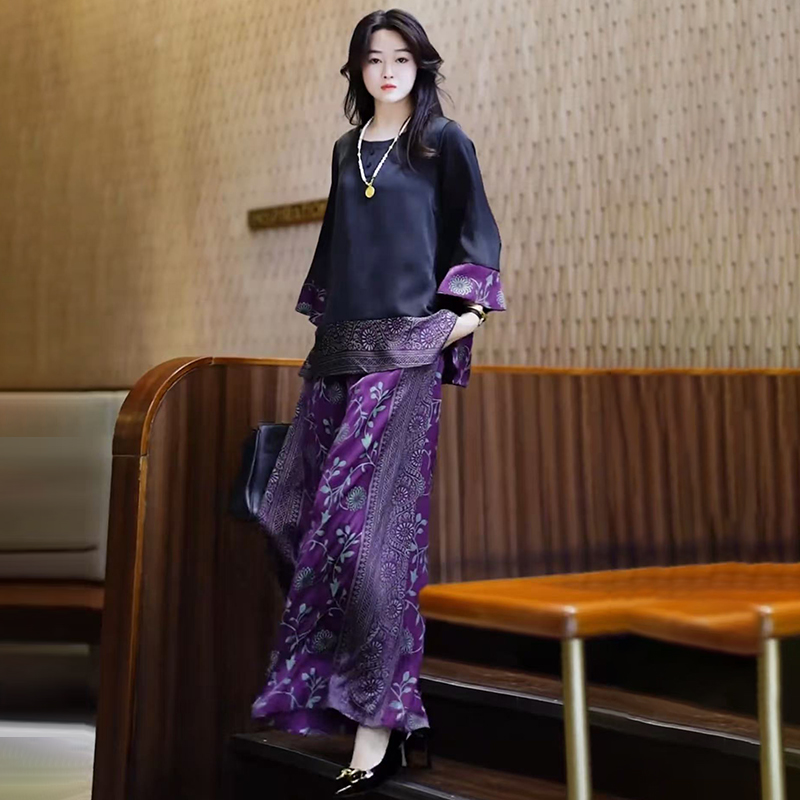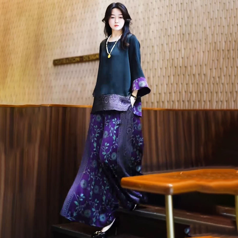欧货高端夏季中老年妈妈真丝套装时尚加肥大码200斤阔腿裤两件套