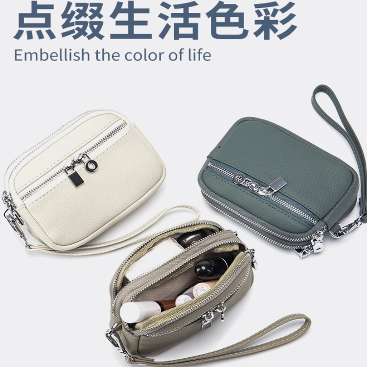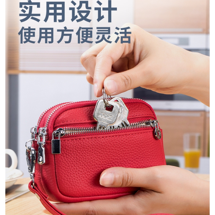 新款女士真软皮迷你小包零钱包大容量双拉链钱包多功能手拎收纳包