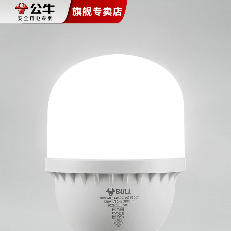 公牛led灯泡大功率超亮节能灯e27螺口车间工厂照明柱形球泡20w40w