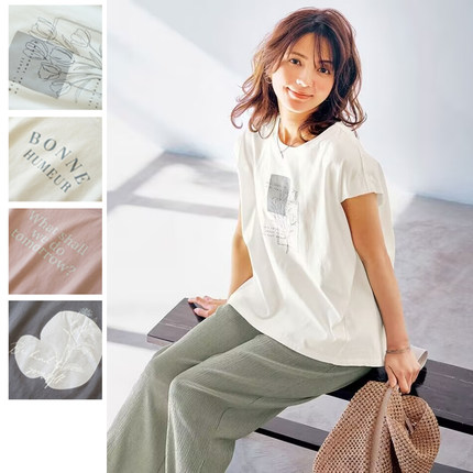 日系千家新款夏季纯棉短袖T恤圆领无袖宽松显瘦大码女装上衣T511