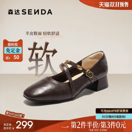 【双11预售】森达小金豆玛丽珍小皮鞋女25秋新款商场软羊皮单鞋
