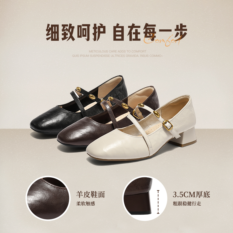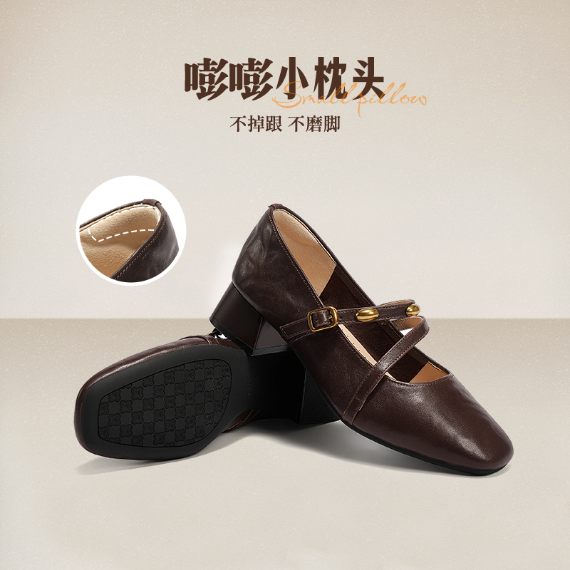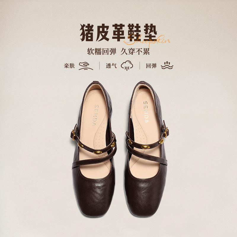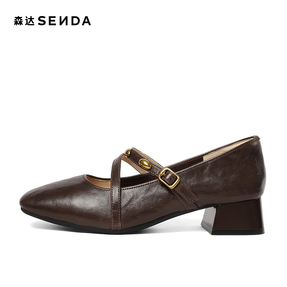 森达玛丽珍小皮鞋不累脚中跟单鞋