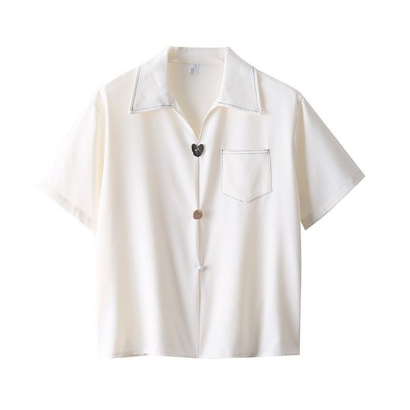 进口法式v领雪纺短袖衬衫夏季上衣设计感小众女式休闲风通勤气