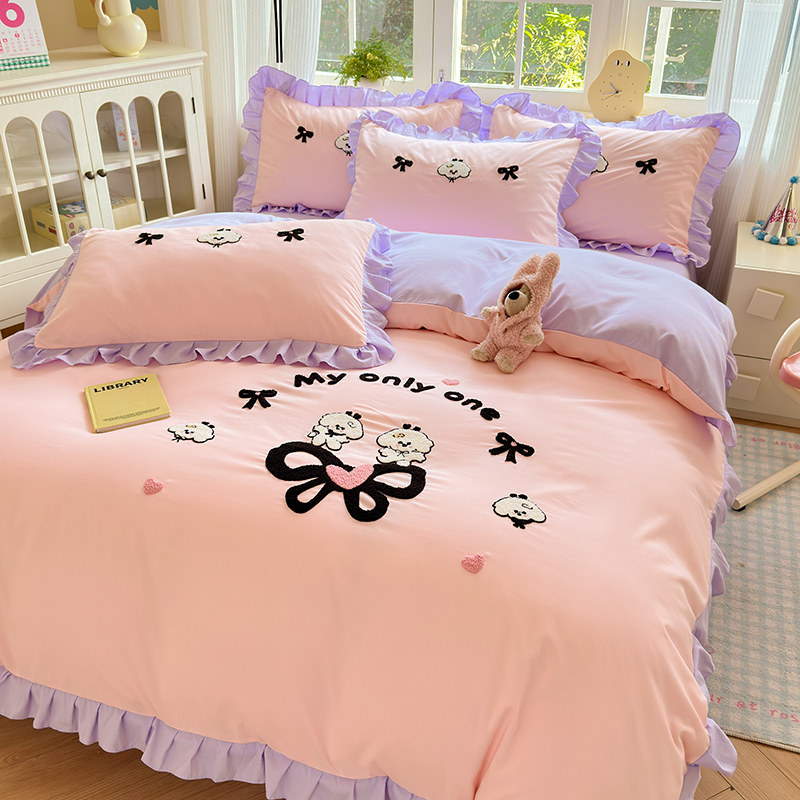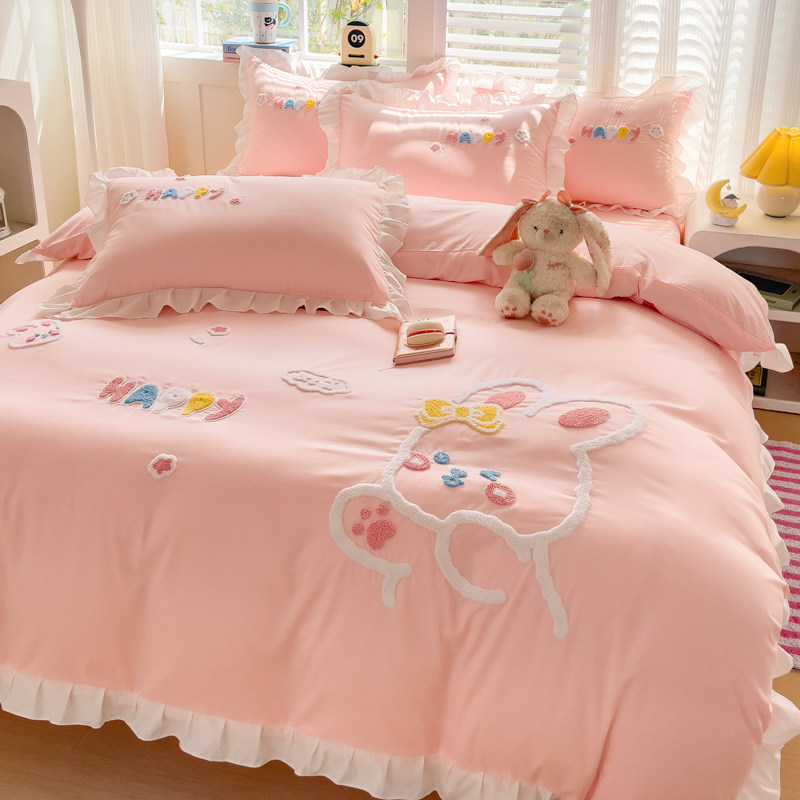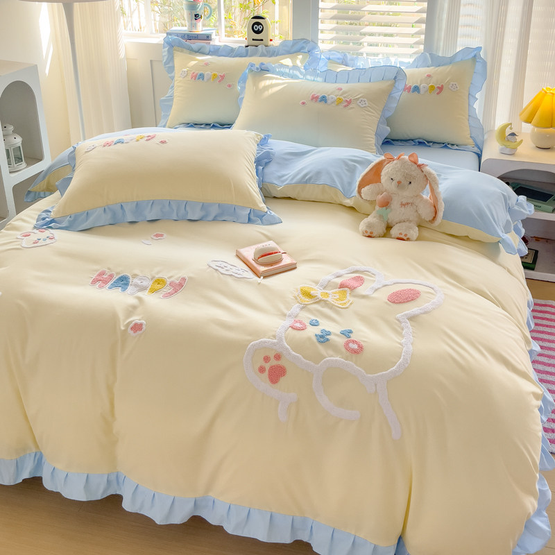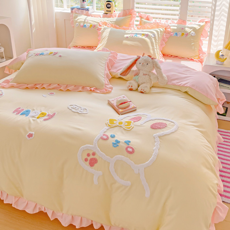 特价款纯棉四件套裸睡全棉可爱欢乐兔被套刺绣被罩床罩床笠公主风