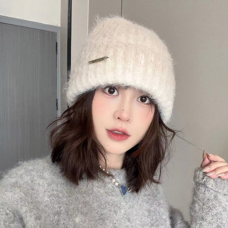 秋冬保暖毛线帽子女渐变色针织帽韩版甜酷包头帽大头围显脸小时尚