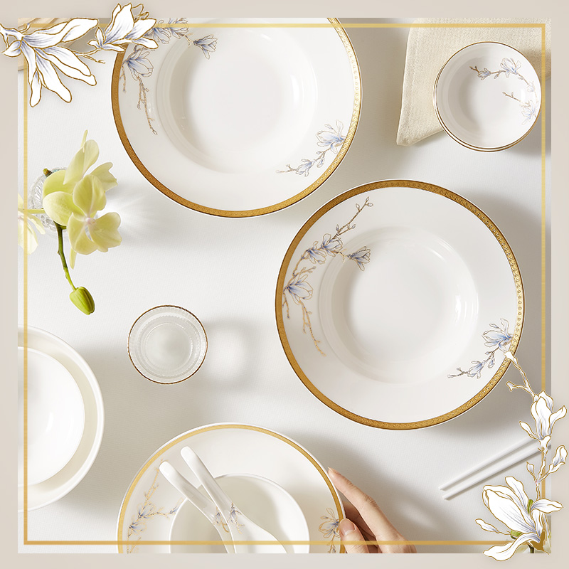 玛戈隆特骨瓷餐具散件米饭碗家用好看的碗具中式套装釉下彩汤面碗