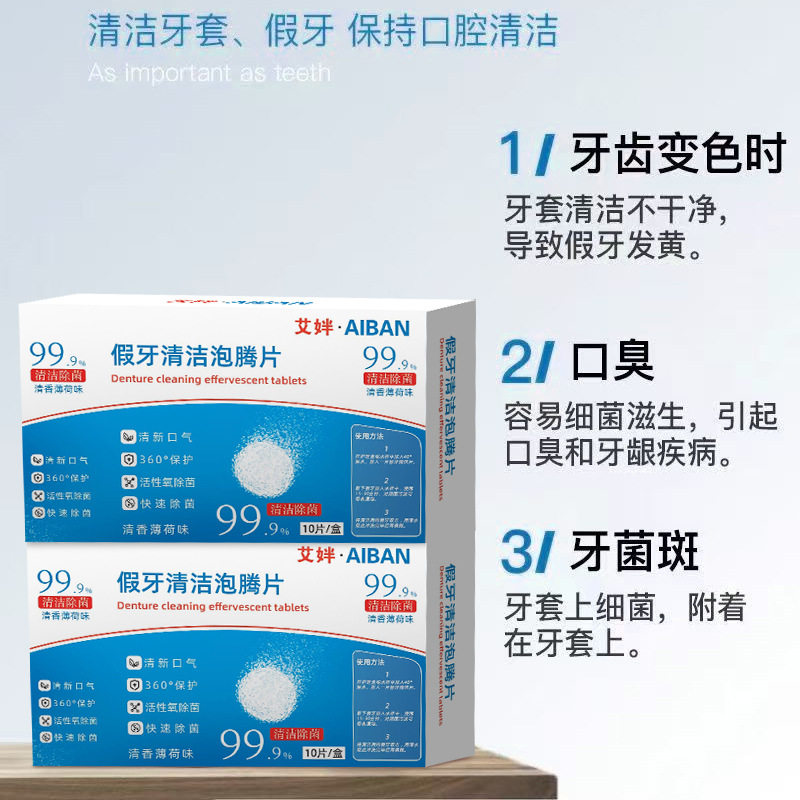 假牙清洁泡腾片温和清洁不伤牙齿活性配方去除异味发黄泡腾清洁片