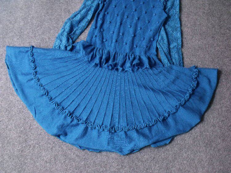 7102-大厂好做工 针织超细羊毛修身显瘦蕾丝长袖公主裙连衣裙