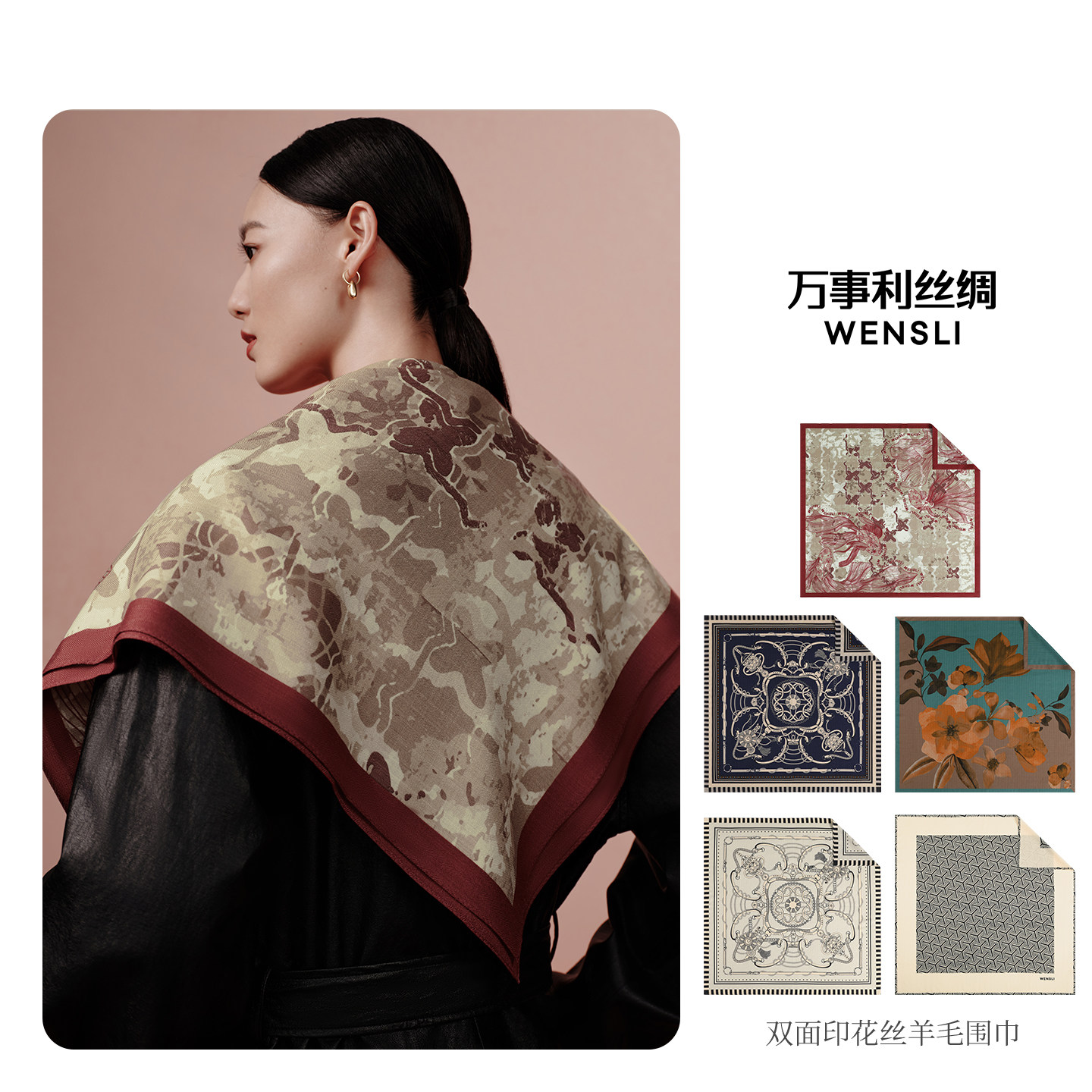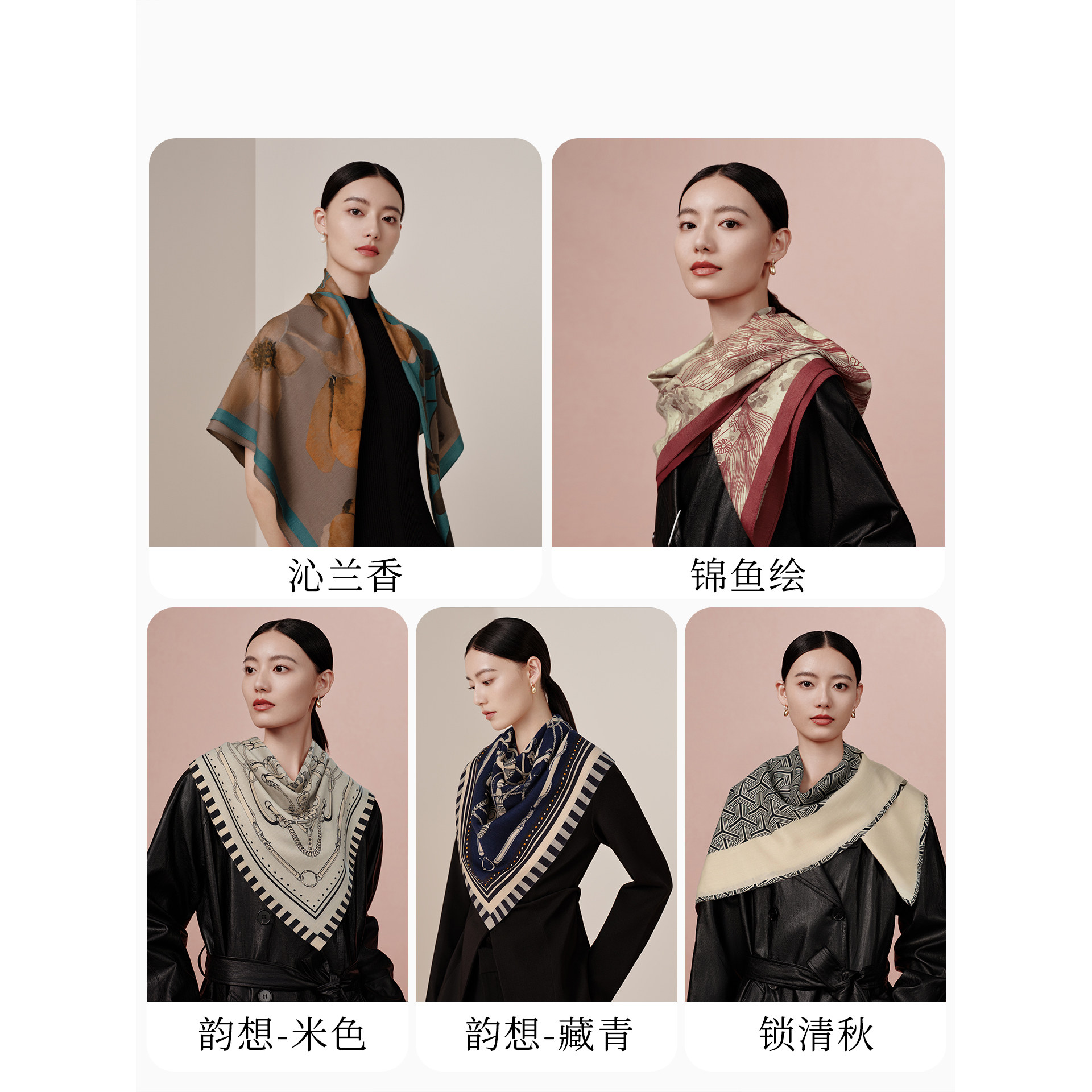 万事利25冬季新款重磅真丝丝巾丝羊毛红色围巾女桑蚕丝披肩锦鱼绘