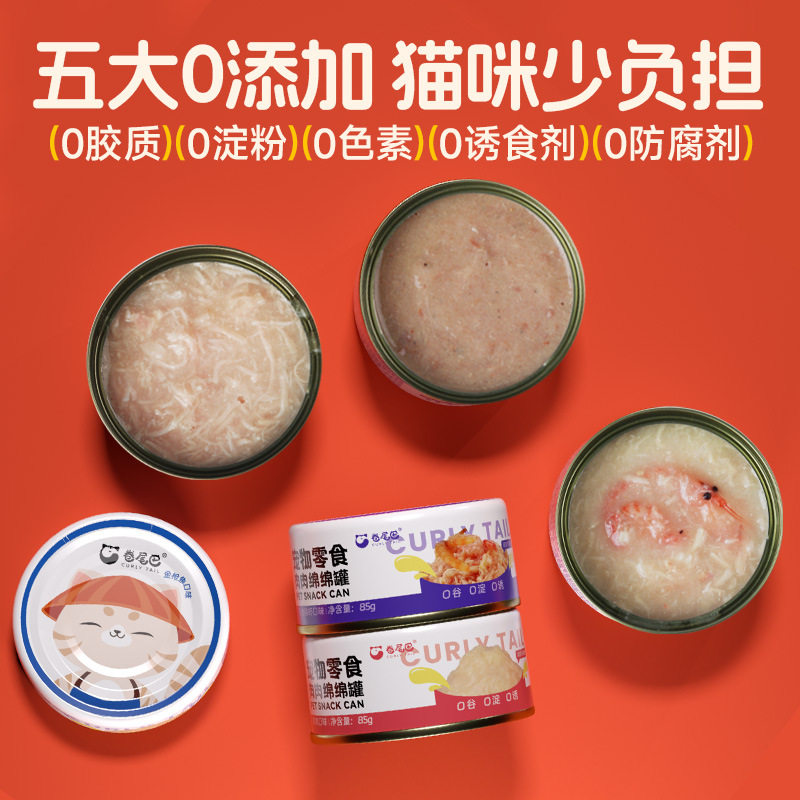 卷尾巴猫罐头成猫幼猫营养湿粮金枪鱼鸡肉白肉补水猫咪零食整箱