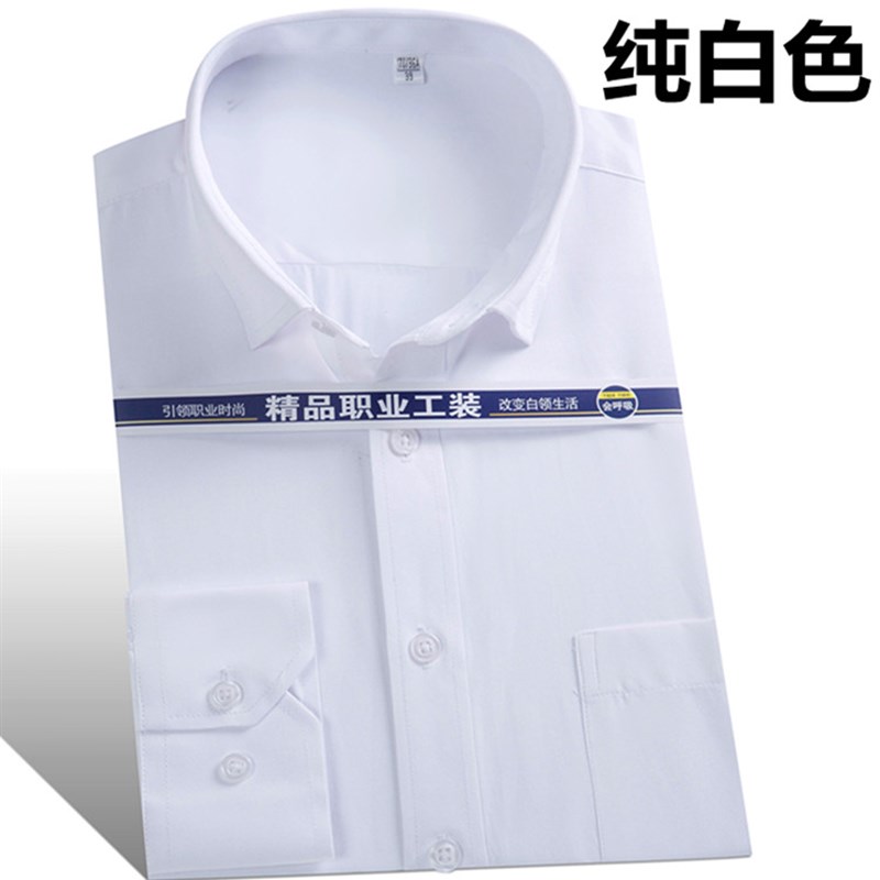 男装春季纯棉免烫长袖衬衫加大码白色职业工装男全棉商务正装衬衣