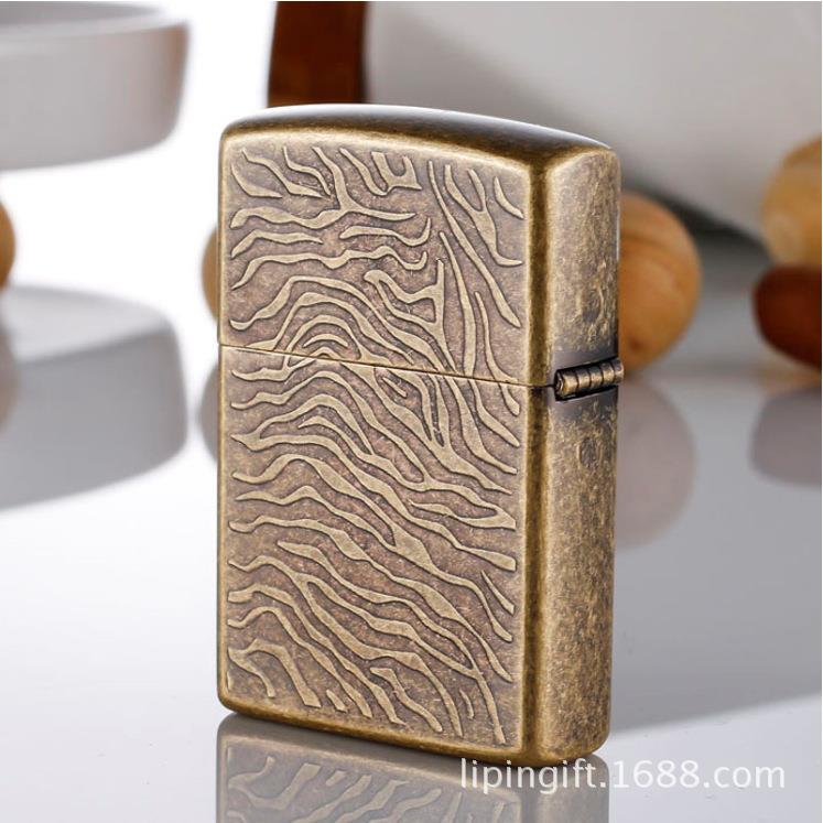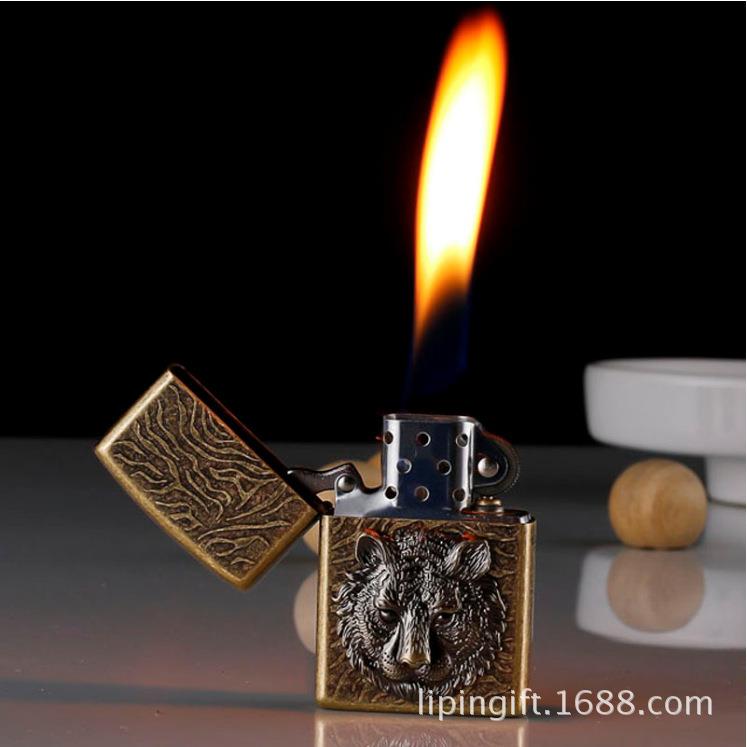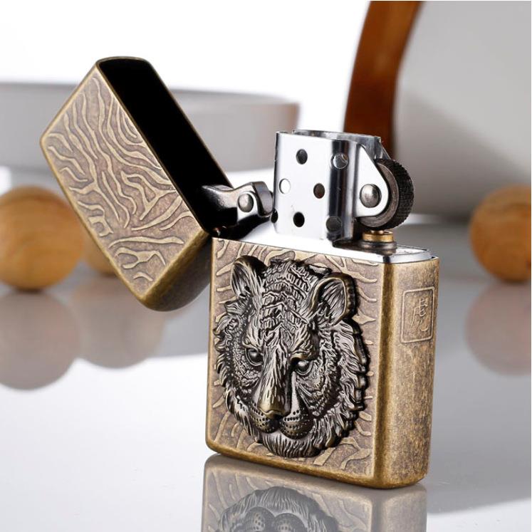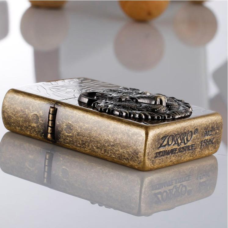 ZORRO佐罗仿古青铜创意砂轮金属煤油打火机贴章三面虎头复古