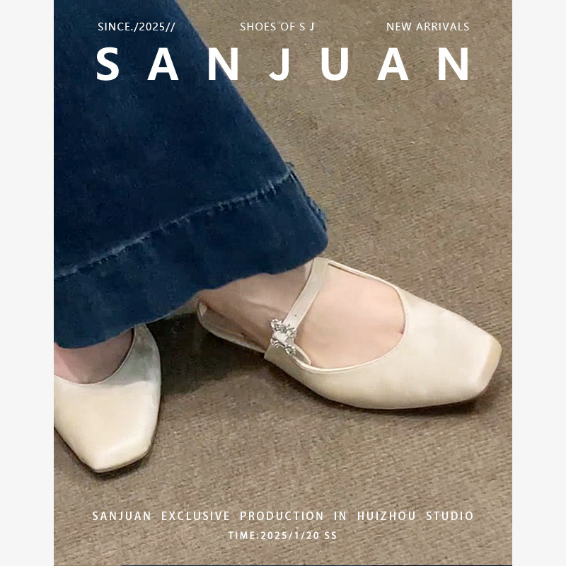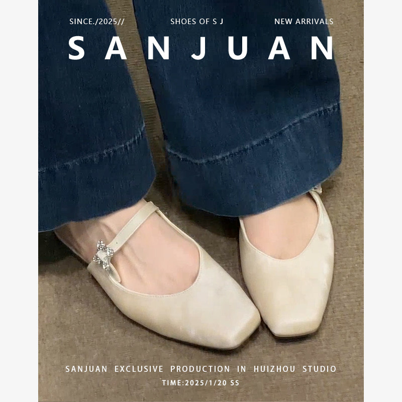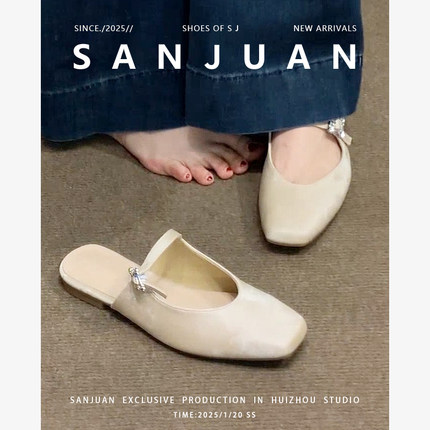 羊皮版sanjuan三卷包头半拖鞋超美凉拖外穿平底鞋中式国风穆勒鞋