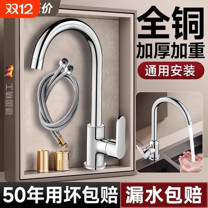 全铜厨房水龙头冷热洗菜盆不锈钢水槽防溅洗手池单冷旋转阳台热水