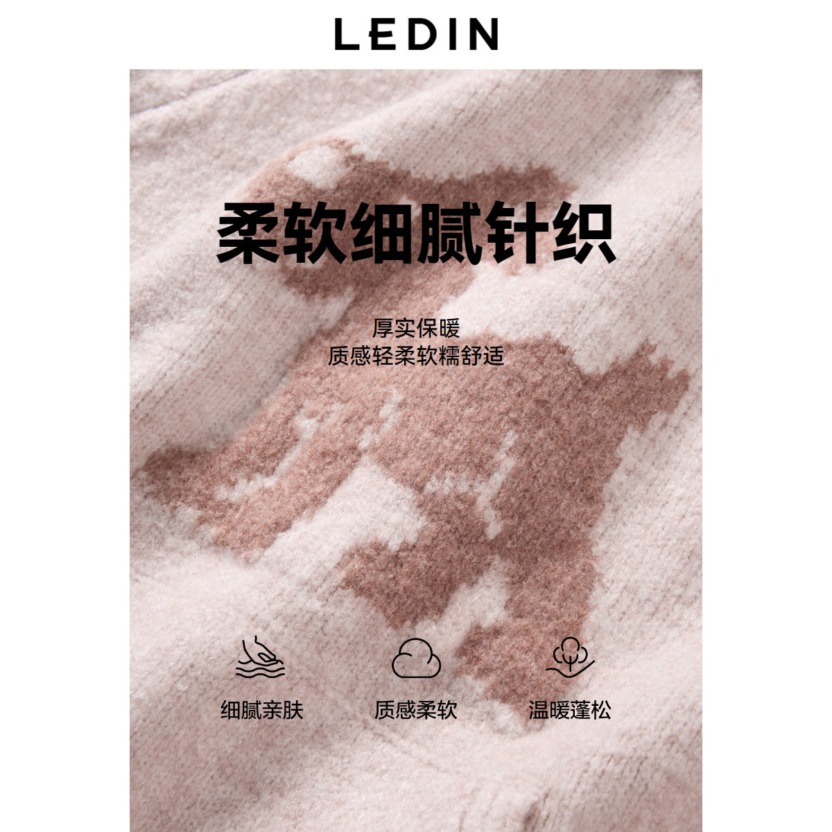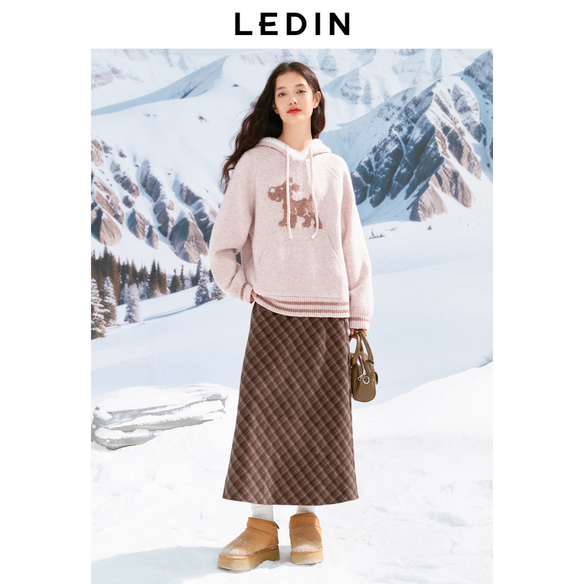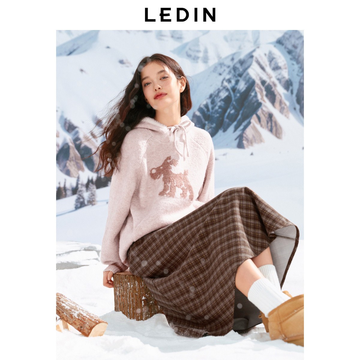 乐町连帽针织线套衫女冬季仿貂毛拼接领口韩版趣味毛衣