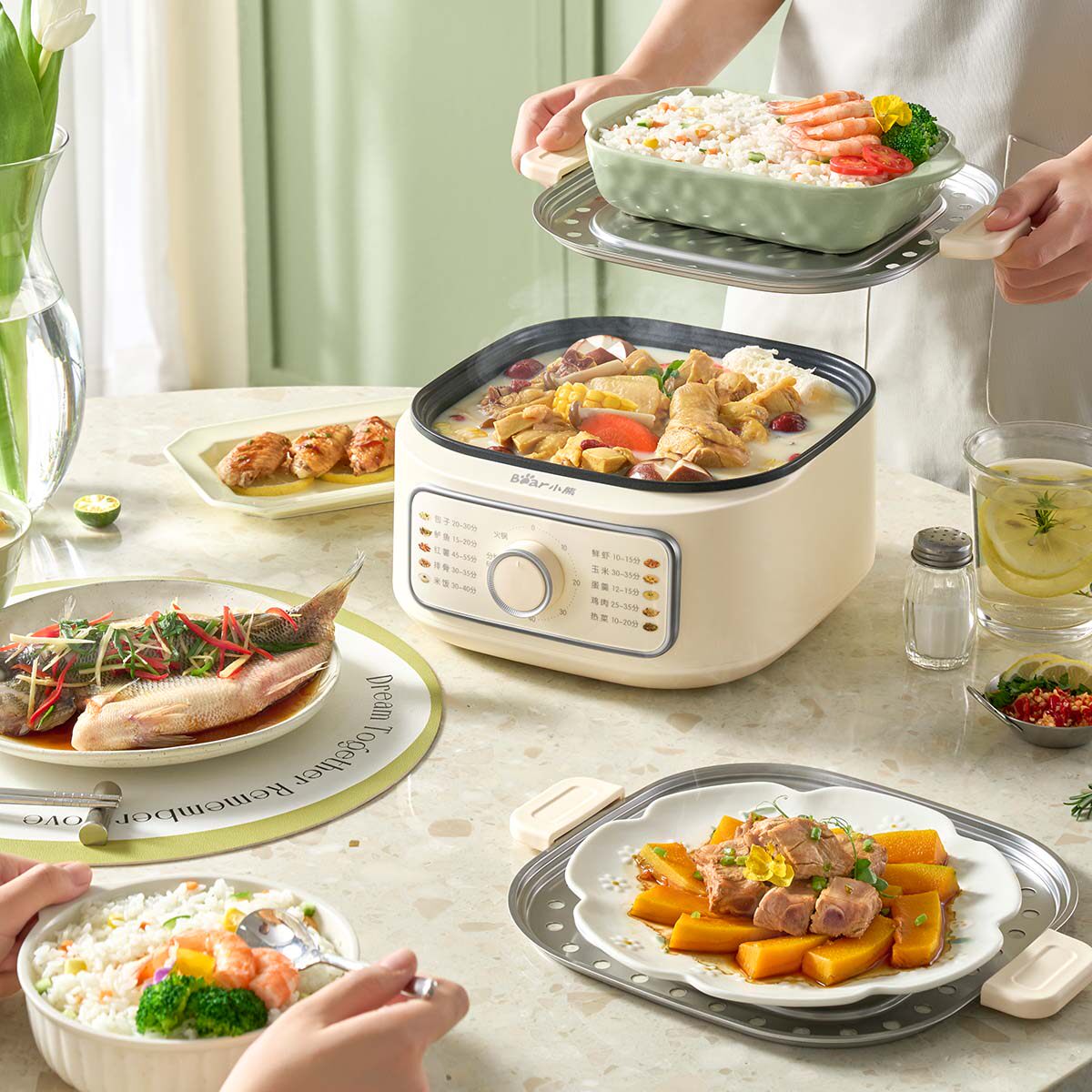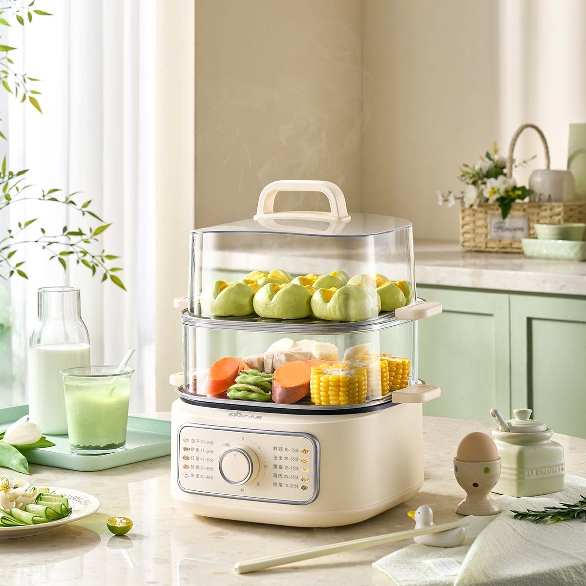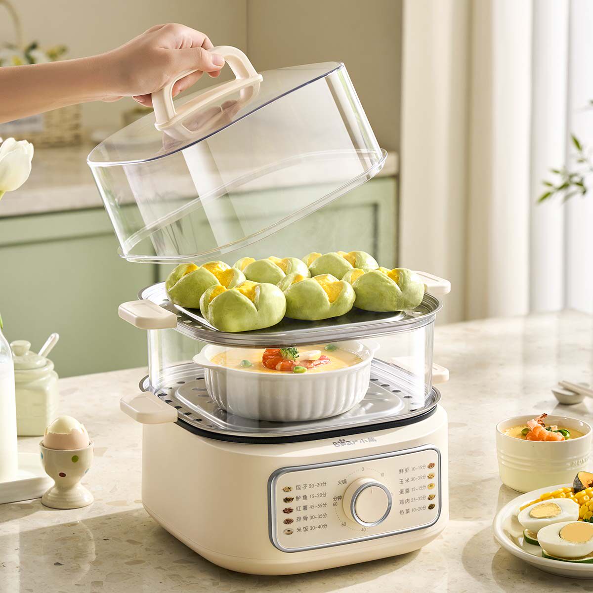 小熊电蒸锅不锈钢家用三层大容量一体多功能早餐机定时蒸煮锅蒸菜