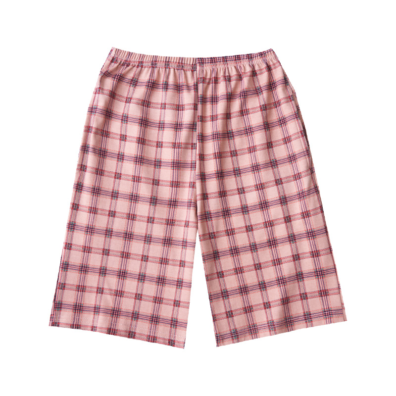圆人单件上衣睡衣女夏纯棉短袖可外穿大码格子2025开衫上装家居服