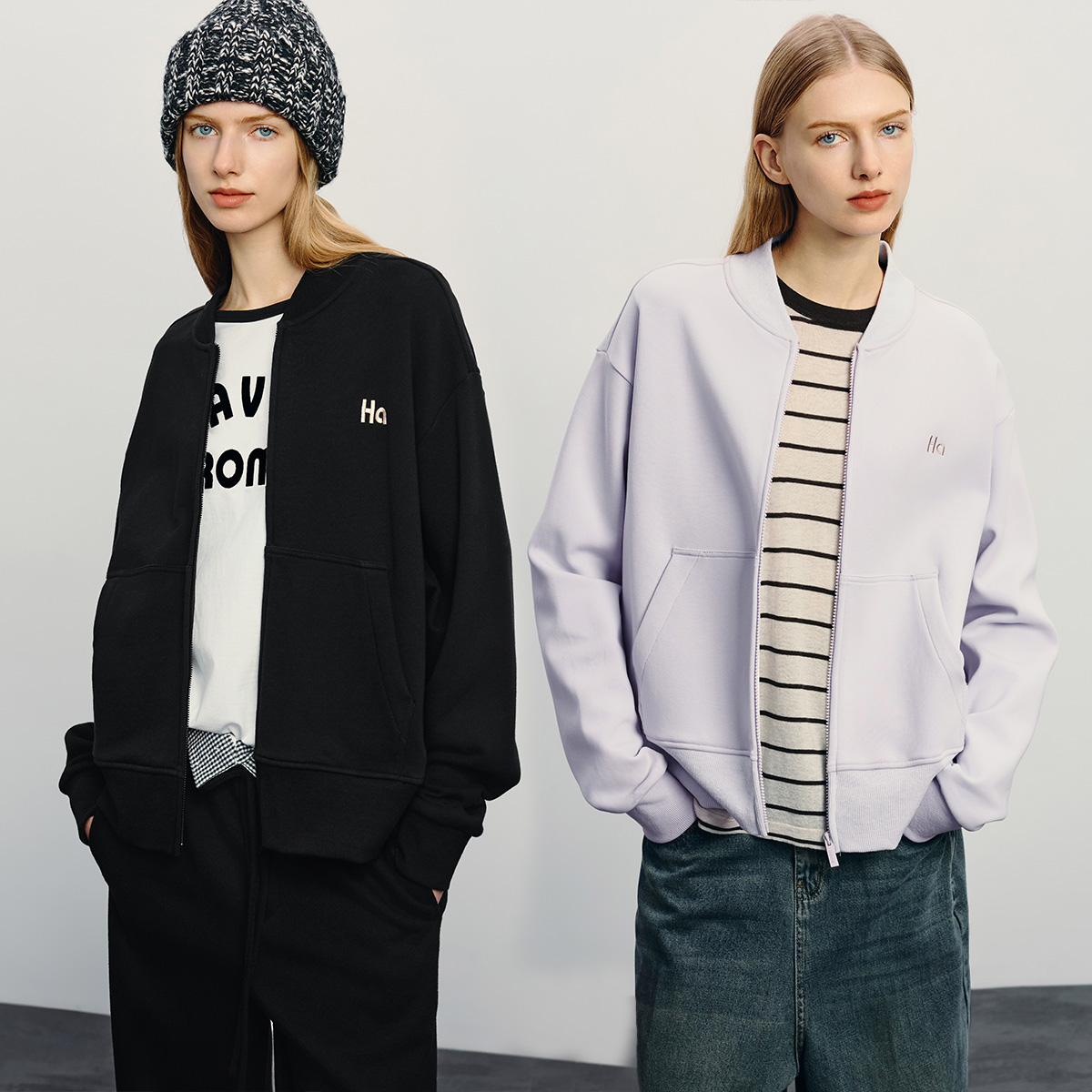 HAVVA宽松拉链开衫卫衣外套女士休闲棒球服上衣2025秋季W3-01610