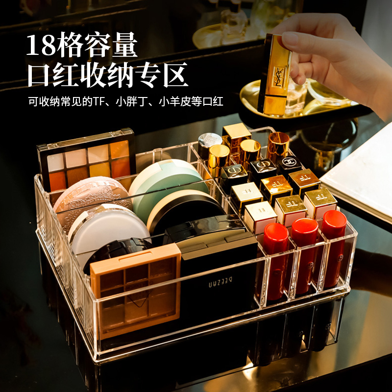 化妆品收纳盒桌面透明亚克力口红眼影置物架整理梳妆台抽屉分格盒