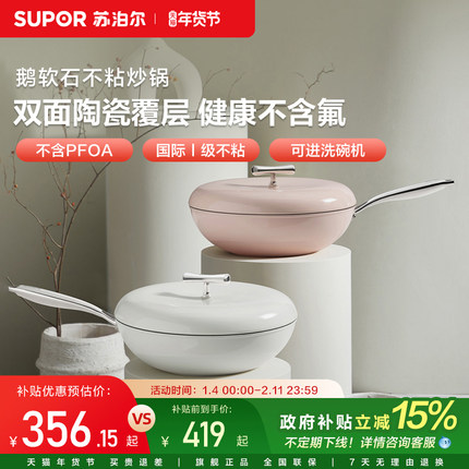苏泊尔陶瓷覆层炒锅不粘锅家用耐磨炒菜锅洗碗机燃气灶电磁炉锅
