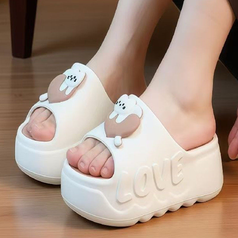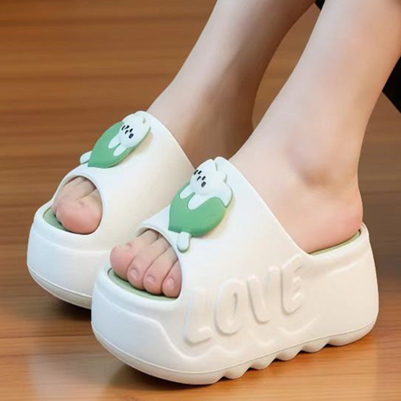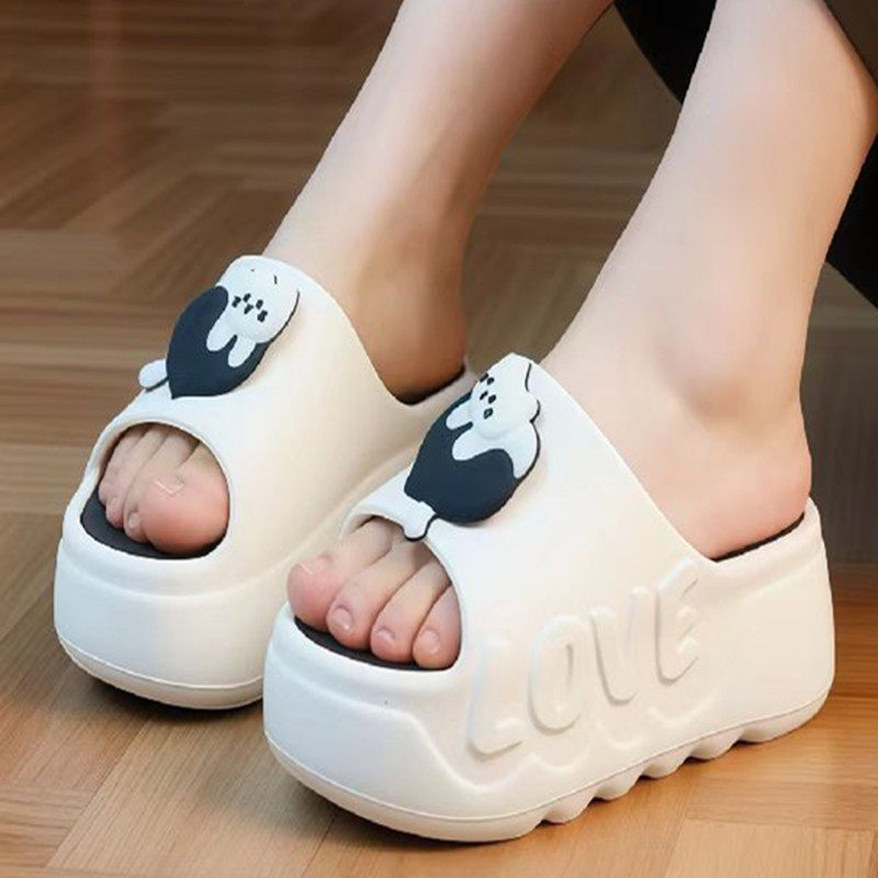 拖鞋女夏可爱卡通居家室内高跟一字拖防滑坡跟时尚外穿厚底凉拖鞋