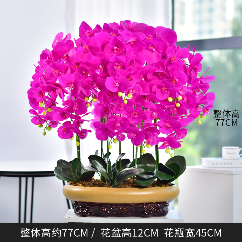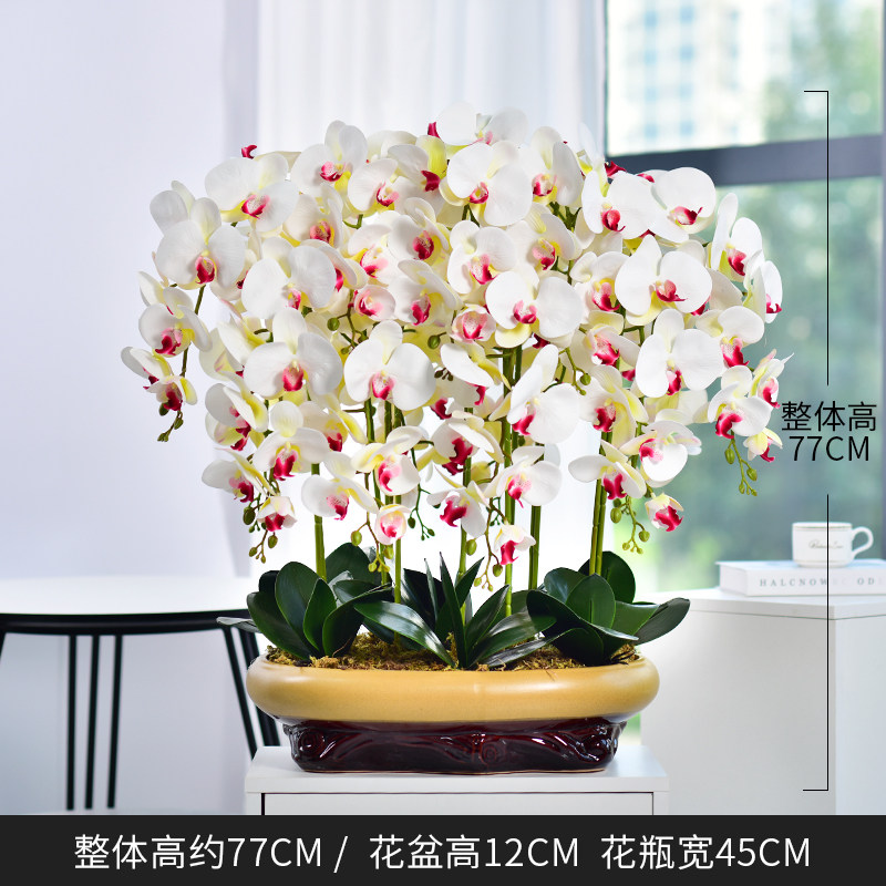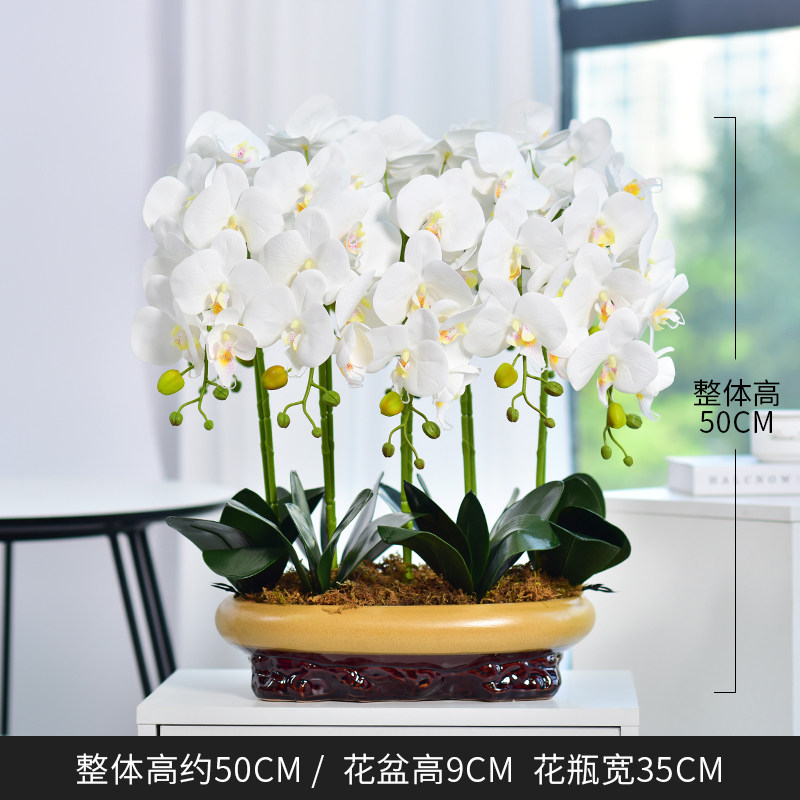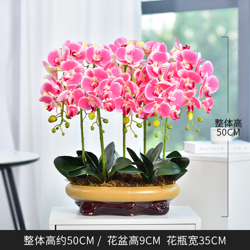 高端轻奢PU蝴蝶兰仿真花摆设客厅装饰品大厅办公室假花花艺摆件花