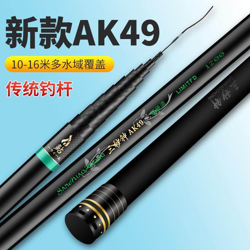 三秒钟AK49长节炮杆手竿传统钓鱼竿10/11/12/13/14/15米超硬超轻