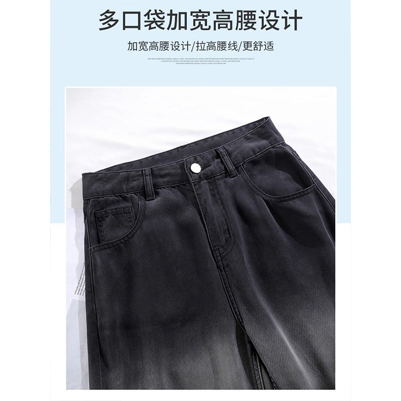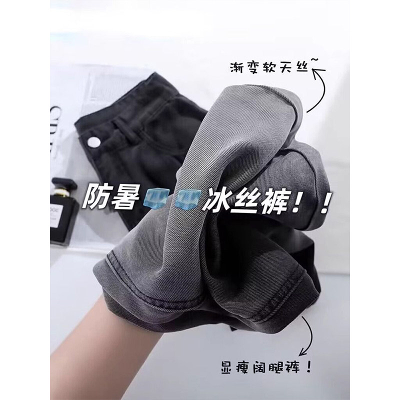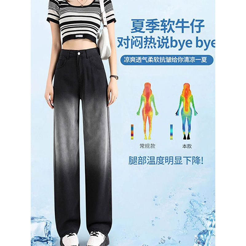 300斤胖mm夏季薄款垂感天丝牛仔裤女特大码女装渐变冰丝直筒裤子