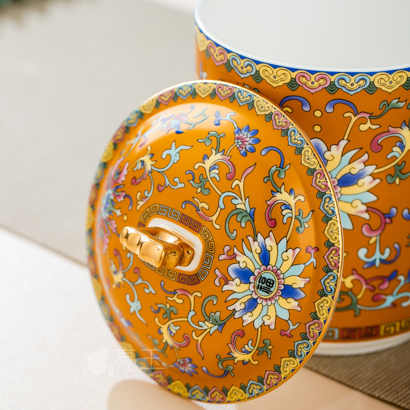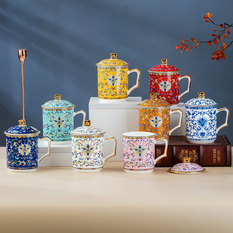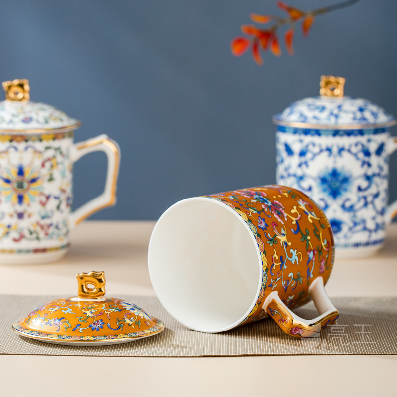 亮玉中式骨瓷办公杯珐琅彩泡茶杯