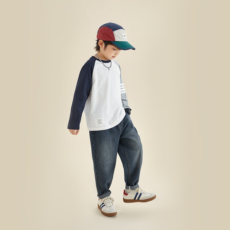 多多家 男童牛仔裤春秋款2024春装新款儿童中大童休闲裤长裤子