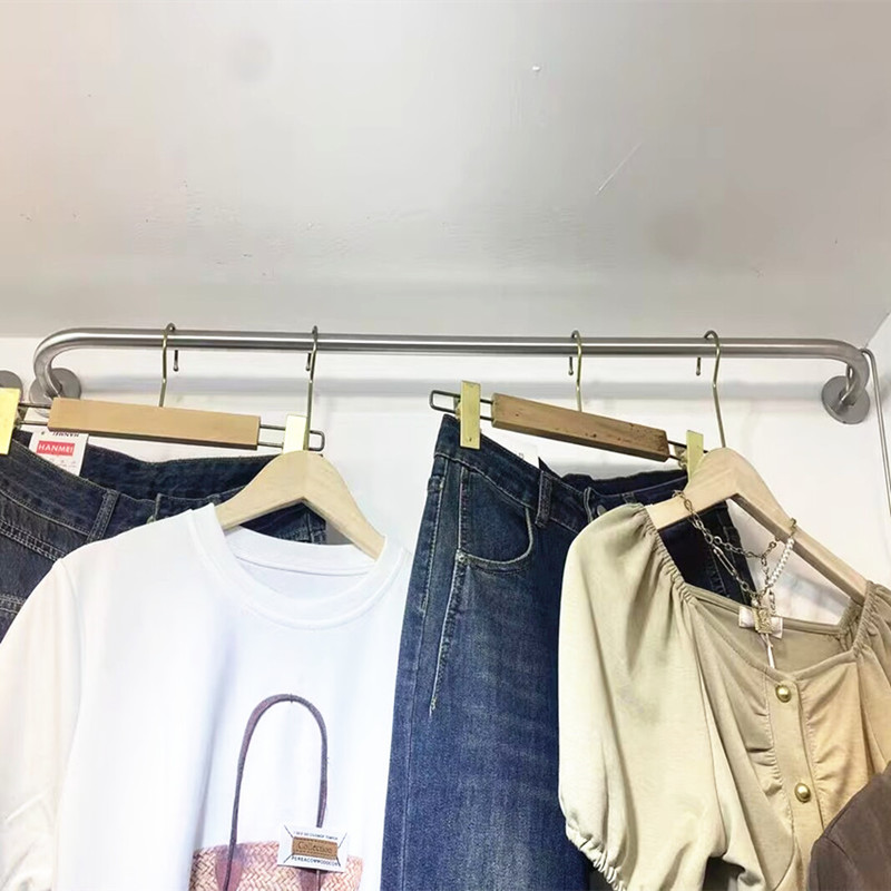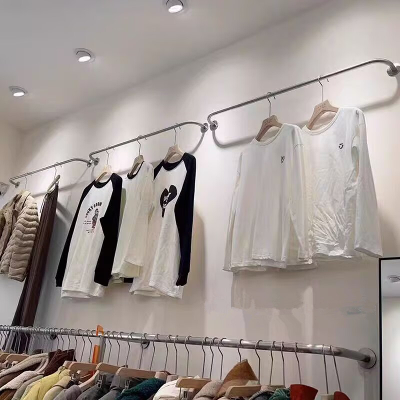 服装店上墙展示架不锈钢正挂衣架套装壁挂墙面衣服横杆墙上挂衣架