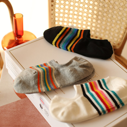 米吉诺拉春夏季薄款隐形浅口船袜子女韩版运动彩虹条吸汗纯棉短袜
