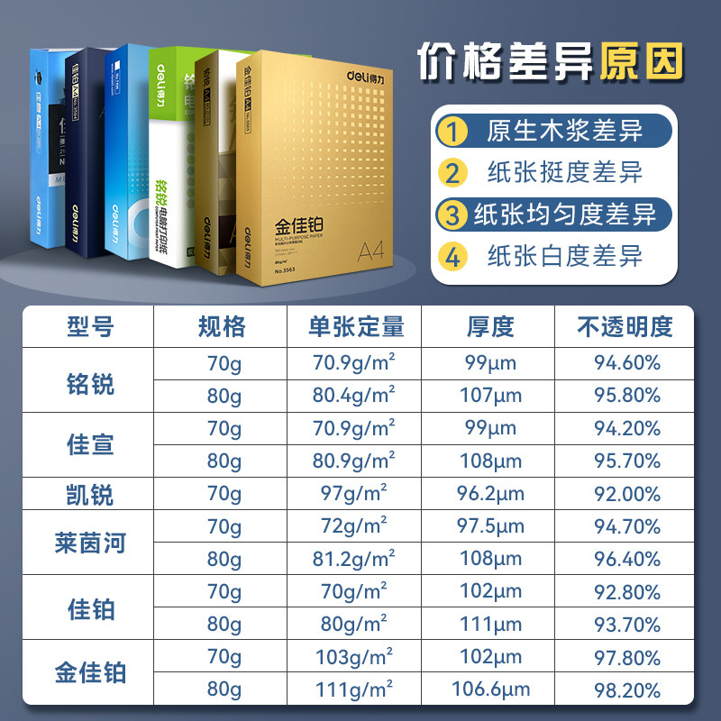 得力A4纸复印纸a4打印纸整箱5包装70g办公用纸加厚a4打印白纸单包500张复印纸草稿纸学生用a4纸80g办公纸包邮